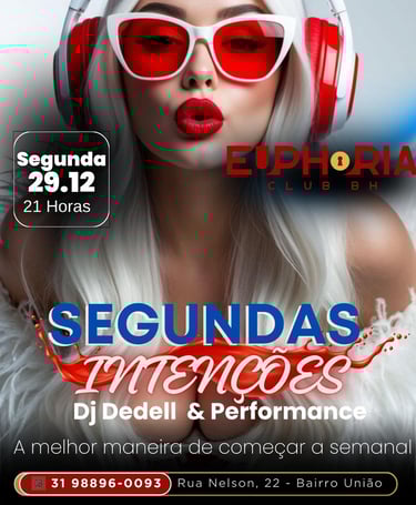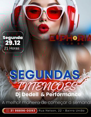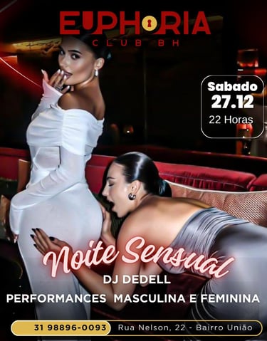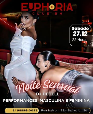 Euphoria Club é uma casa Liberal e Swing Localizada em Belo Horizonte. Com fácil acesso ao aeroporto e região central da cidade, inaugurada dia 18 de Novembro de 2023. É muito mais do que uma balada, é um convite para celebrar a intimidade de forma moderna, quebrando as barreiras das baladas tradicionais. Aqui convidamos você a viver uma experiência única, onde a euforia é nossa filosofia! Abrimos segunda, sexta e sábado.