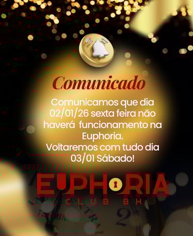 Euphoria Club é uma casa Liberal e Swing Localizada em Belo Horizonte. Com fácil acesso ao aeroporto e região central da cidade, inaugurada dia 18 de Novembro de 2023. É muito mais do que uma balada, é um convite para celebrar a intimidade de forma moderna, quebrando as barreiras das baladas tradicionais. Aqui convidamos você a viver uma experiência única, onde a euforia é nossa filosofia! Abrimos segunda, sexta e sábado.